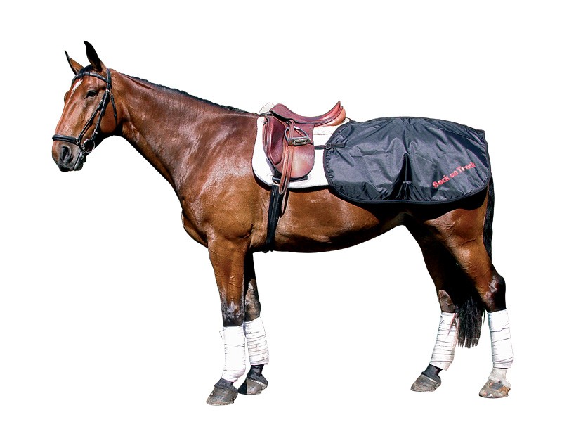 Die Nierendecke schützt den empfindlichen Nierenbereich und die hintere Rückenmuskulatur und ist daher ideal für das Training in der kälteren Jahreszeit geeignet. Die Nierendecke wird mittels zweier Strippen an den Sattelstrippen oder am Fahrgeschirr befestigt. Durch ihre wetterbeständige Beschichtung ist sie hervorragend für den Außeneinsatz geeignet. Die Nierendecke entspricht den gängigen Deckengrößen und ist an diese speziell angepasst. Somit können Sie ganz bequem die Größe der Nierendecke nach der normalen Deckengröße des Pferdes bestimmen.