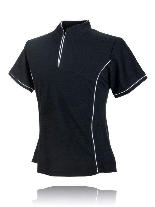 Dieses Shirt ist eine hervorragende Wahl bei Schulter und Rückenverspannungen. Das T-Shirt ist sehr schick und modern und somit ein tolles Kleidungsstück für den Alltag. Das T-Shirt hat eine tolle Passform und vermittelt ein behagliches Gefühl. Im Unterschied zum normalen T-Shirt ist es leicht figurbetont geschnitten und mit einem leichten Stehkragen und einem kurzen Reißverschluss am Hals versehen. Das weiße T-Shirt hat schwarze Paspeln an den Nähten und das schwarze T-Shirt hat weiße Paspeln.